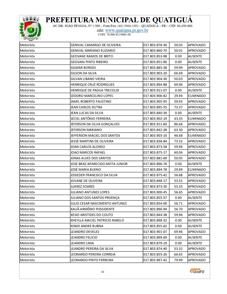 Abaixo, segue o resultado preliminar conforme divulgado pelos canais oficiais.