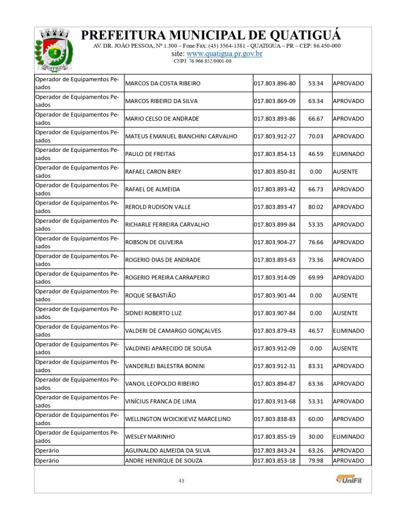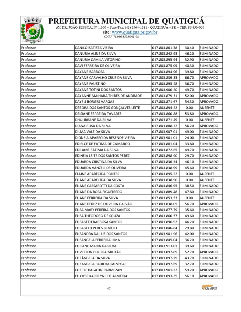 Mais tarde, o resultado também será disponibilizado no site oficial da Prefeitura Municipal de Quatiguá, garantindo amplo acesso às informações por parte dos candidatos inscritos.