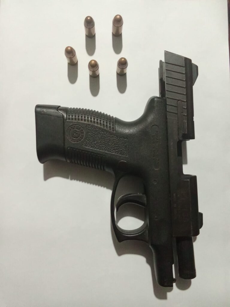 Segundo o relato, o homem estaria portando duas armas de fogo, sendo uma pistola e um revólver. Ainda conforme as informações, no momento em que o suspeito deixou o local em um veículo, familiares conseguiram retirar do interior do carro uma pistola calibre .380, que foi posteriormente entregue à equipe policial.