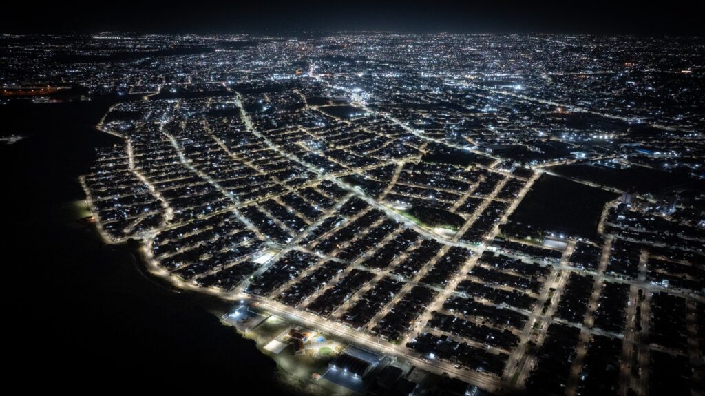 O município de Pinhais, na Região Metropolitana de Curitiba, fechou 2025 com 100% da iluminação pública composta por lâmpadas de LED, beneficiando uma população de 127 mil pessoas (IBGE, 2022). A conquista foi possível graças a um convênio com a Itaipu Binacional, que viabilizou a instalação de 2.151 luminárias com a nova tecnologia, em substituição às lâmpadas de vapor de sódio, vapor metálico e vapor de mercúrio.