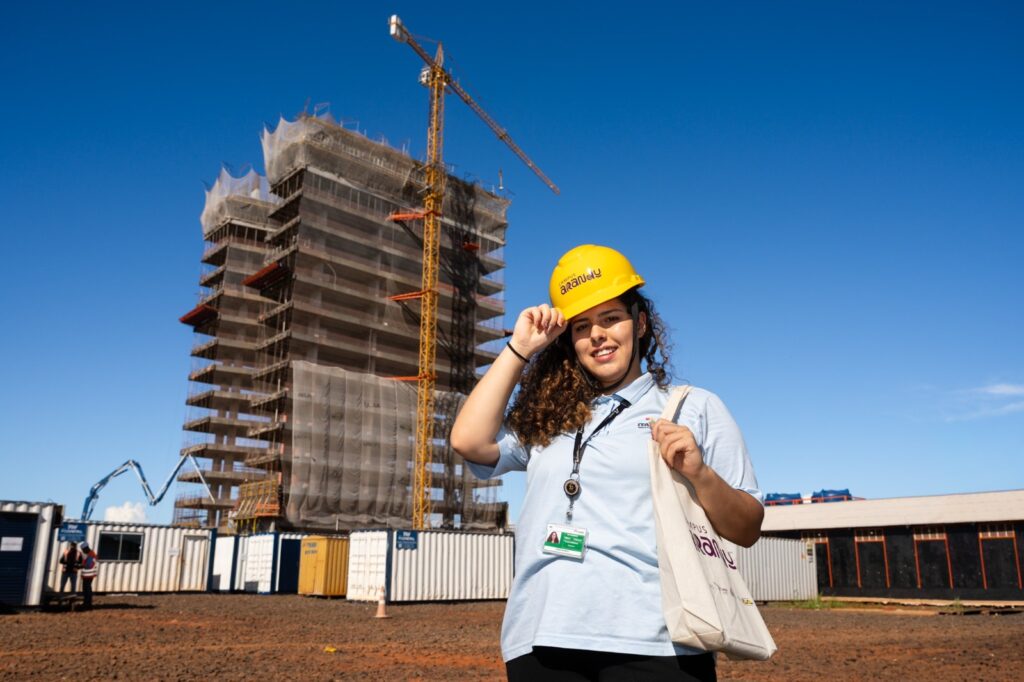 Para a estagiária da Itaipu e estudante da Unila Yanki Karem Barreiros da Silva, visitar o canteiro de obras do Campus Arandu é uma experiência especial. Ao testemunhar o andamento da construção, ela definiu o sentimento que compartilha com a comunidade acadêmica. “É um sonho. Um sonho coletivo de alunos e professores, porque vai ampliar as oportunidades acadêmicas e garantir melhores espaços de aprendizagem e convivência”, resumiu.