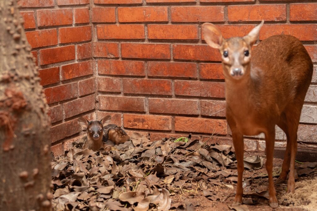 Segundo Aline, o manejo correto dos filhotes nos primeiros meses é crucial para garantir que eles cresçam e cheguem saudáveis à vida adulta. Quando identificam que uma fêmea está prenha, eles separam o casal e deixam a futura mamãe em um recinto especial para que ela tenha o parto nas melhores condições. Na “maternidade” do RBV, as mães anta e veado-bororó ficaram em “quartos” próximos, um de frente para o outro.