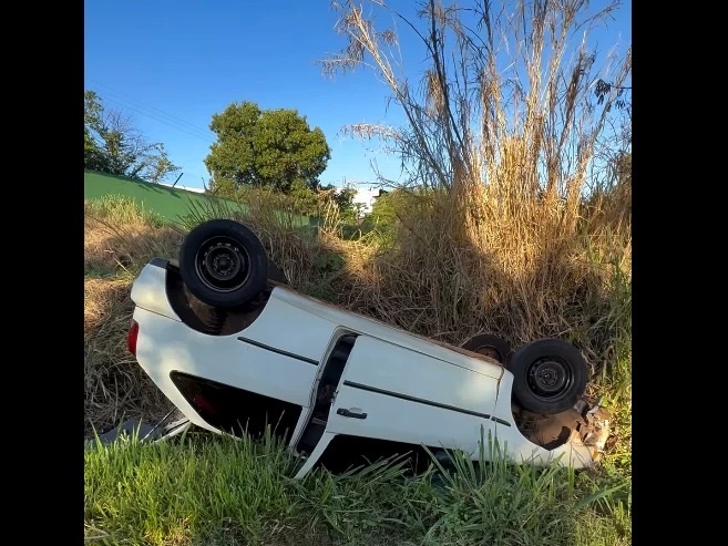 No local, um veículo Volkswagen Gol, de cor branca e placas de Bandeirantes PR, encontrava-se capotado às margens da rodovia. O automóvel estava bastante danificado e não havia ninguém em seu interior no momento da chegada da equipe.
