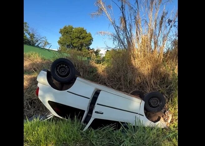 No local, um veículo Volkswagen Gol, de cor branca e placas de Bandeirantes PR, encontrava-se capotado às margens da rodovia. O automóvel estava bastante danificado e não havia ninguém em seu interior no momento da chegada da equipe.