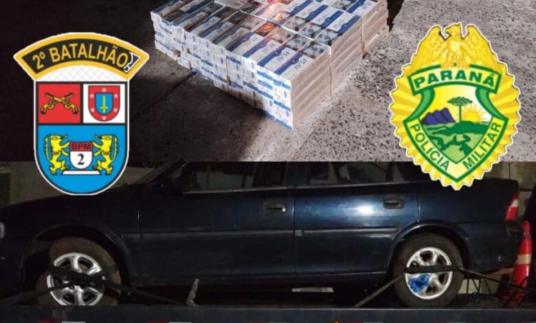 Durante as diligências, um dos veículos foi localizado entrando em Conselheiro Mairinck e abordado na Rua Pedro Sebastião. Na revista veicular, os policiais encontraram 135 pacotes de cigarros de procedência paraguaia, de marcas conhecidas no comércio ilegal.