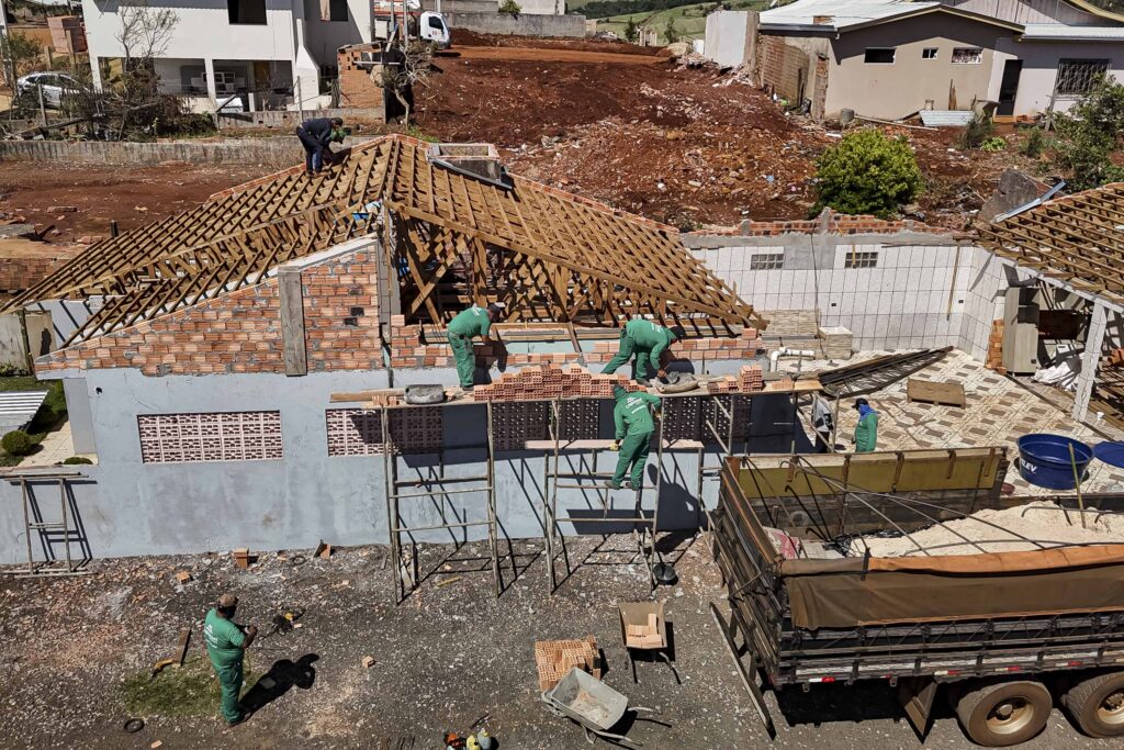 RECONSTRUÇÃO – Pelo Programa Reconstrução, outro auxílio do Governo às famílias de Rio Bonito do Iguaçu, o Estado destinou R$ 17,8 milhões. Desse total, R$ 15,1 milhões estão sendo aplicados diretamente na reconstrução de casas por meio do carregamento de cartões entregues aos beneficiários. Outros R$ 2,7 milhões foram liberados especificamente para a compra de materiais de construção, por meio dos vouchers de serviço. Os valores dos benefícios individuais variam entre R$ 20 mil e R$ 50 mil, conforme o grau de dano identificado em cada imóvel.