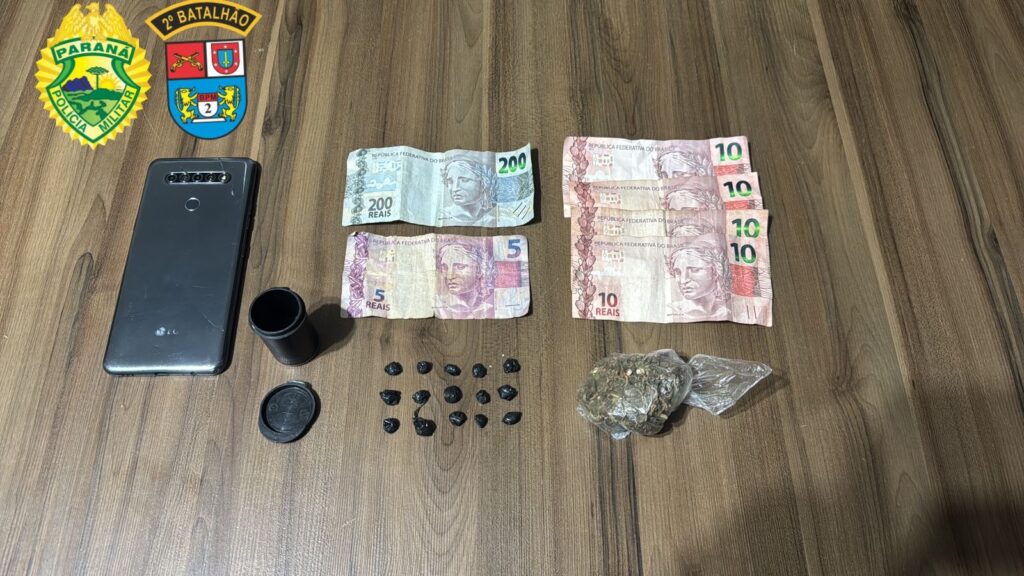 Na revista pessoal, foram encontradas porções de maconha e diversas pedras de substância análoga ao crack, todas embaladas e prontas para a venda, além de dinheiro em espécie em notas variadas, caracterizando o tráfico de drogas.