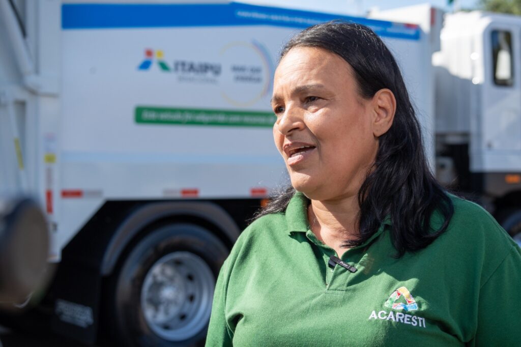 A atividade se destaca com apoio da Itaipu. “Nossa empilhadeira já estava velhinha, dando muito problema. Essa nova veio no momento certo. Sem a Itaipu, a gente não conseguiria trabalhar dessa maneira. A Itaipu está com a gente desde o início, doando equipamento, dando treinamento. Acho que se não fosse a Itaipu, não teríamos conseguido fazer nada do que a gente fez”, ressaltou a catadora Maria Cristina dos Santos.