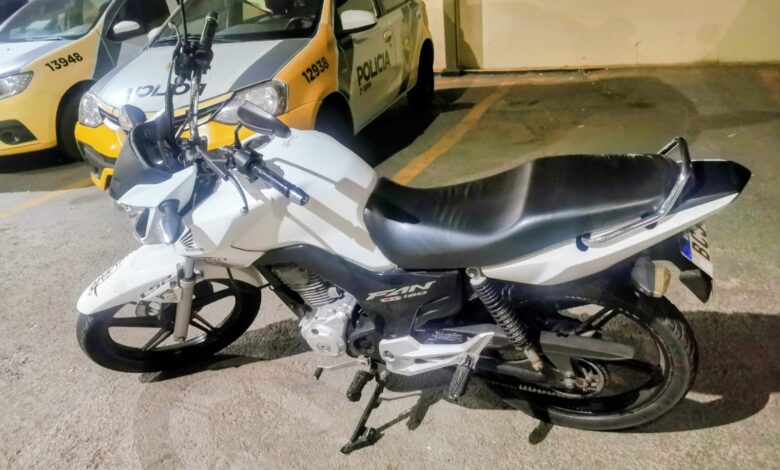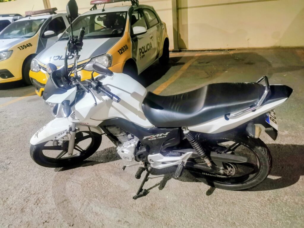 Uma motocicleta foi apreendida pela Polícia Militar na noite de segunda-feira (2), durante patrulhamento de rotina realizado no município de Jacarezinho, no Norte Pioneiro.