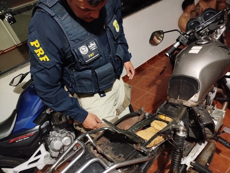 A ação ocorreu após fiscalização orientada por análise de risco. Os policiais localizaram dois indivíduos com duas motocicletas em um hotel da região após monitoramento na BR-153. Durante a fiscalização dos veículos, foram identificados sinais de alteração na estrutura de uma das motocicletas, com a presença de um fundo falso sob o assento. Questionados sobre o motivo da viagem e a propriedade do veículo, os envolvidos alegaram que não possuíam destino definido e negaram a posse da motocicleta; contudo, a chave e os documentos do veículo foram encontrados em posse de um dos suspeitos.