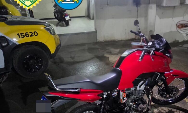 Em consulta aos sistemas oficiais, a equipe constatou que o veículo apresentava bloqueio administrativo, com licenciamento vencido desde o ano de 2023. Diante das irregularidades, a motocicleta foi apreendida.
