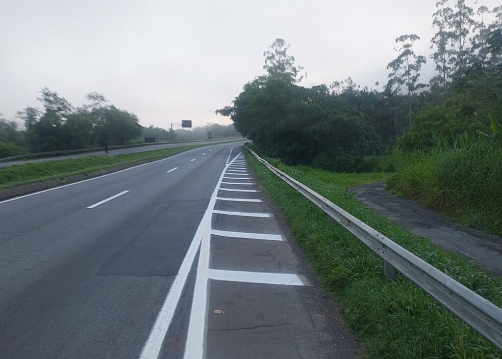 As demarcações das faixas da rodovia, pintura de faixas dos bordos e do eixo da pista são feitos com tinta acrílica emulsionada em água e aspersão de microesferas de vidro. Tal sinalização beneficia os usuários no período noturno e aqueles que dirigem em situação de chuva. Atenção redobrada, pois janeiro e fevereiro são historicamente os mesescom maior volume de precipitação no litoral paranaense, segundo a Simepar.