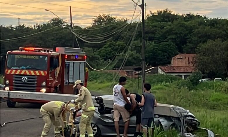 Uma colisão de veículo contra um poste deixou quatro pessoas feridas na tarde desta terça-feira (17), próximo à Vila Sete, em Santo Antônio da Platina.