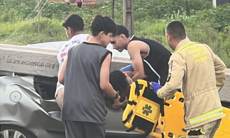De acordo com o Corpo de Bombeiros, o chamado informava que o carro havia atingido um anteparo (poste), que acabou caindo sobre o veículo. No local, os socorristas constataram que havia cinco ocupantes no automóvel, porém apenas três permaneceram para atendimento.