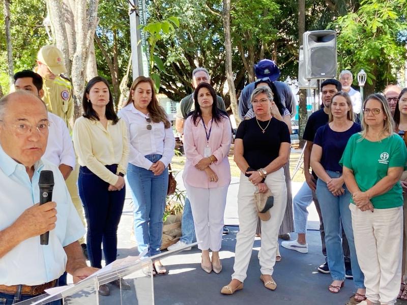 Autoridades também fizeram o plantio de uma muda de árvore, próximo ao parque da praça, onde recentemente uma árvore caiu com as chuvas e ventos.