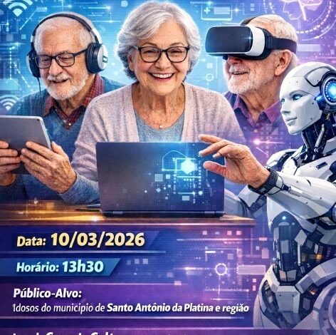 A Prefeitura de Santo Antônio da Platina promove nesta terça-feira, dia 10, às 13h30, o Workshop Idosos Conectados, um encontro voltado ao público da melhor idade com o objetivo de aproximar os idosos das novas tecnologias e apresentar, de forma simples e prática, as possibilidades oferecidas pela inovação e pela inteligência artificial.