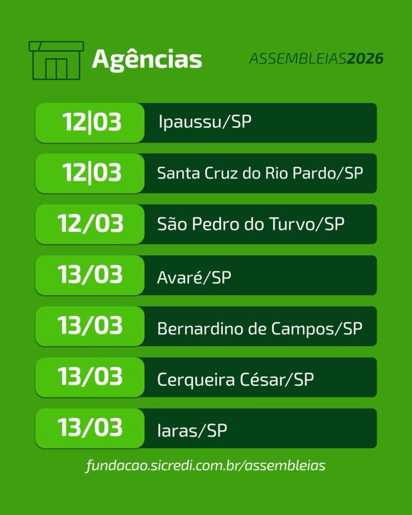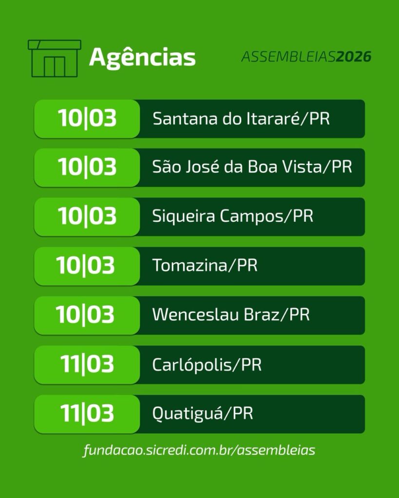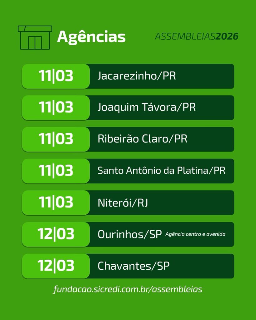 Com o objetivo de apresentar aos associados os resultados consolidados de 2025 e, em conjunto, deliberar sobre as estratégias e os rumos do negócio para o próximo ciclo de gestão, as cooperativas que compõem o Sicredi, instituição financeira cooperativa com presença em todo o Brasil e mais de 10 milhões de associados, se reúnem nos próximos meses. Os encontros na Sicredi Norte Sul ocorrem de 09 a 13 de março de 2026.
