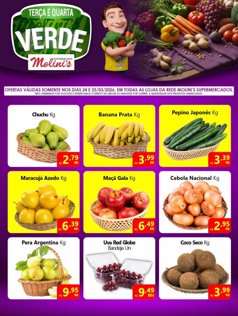 Terça e Quarta Verde – Molini’s Supermercado; confira as ofertas