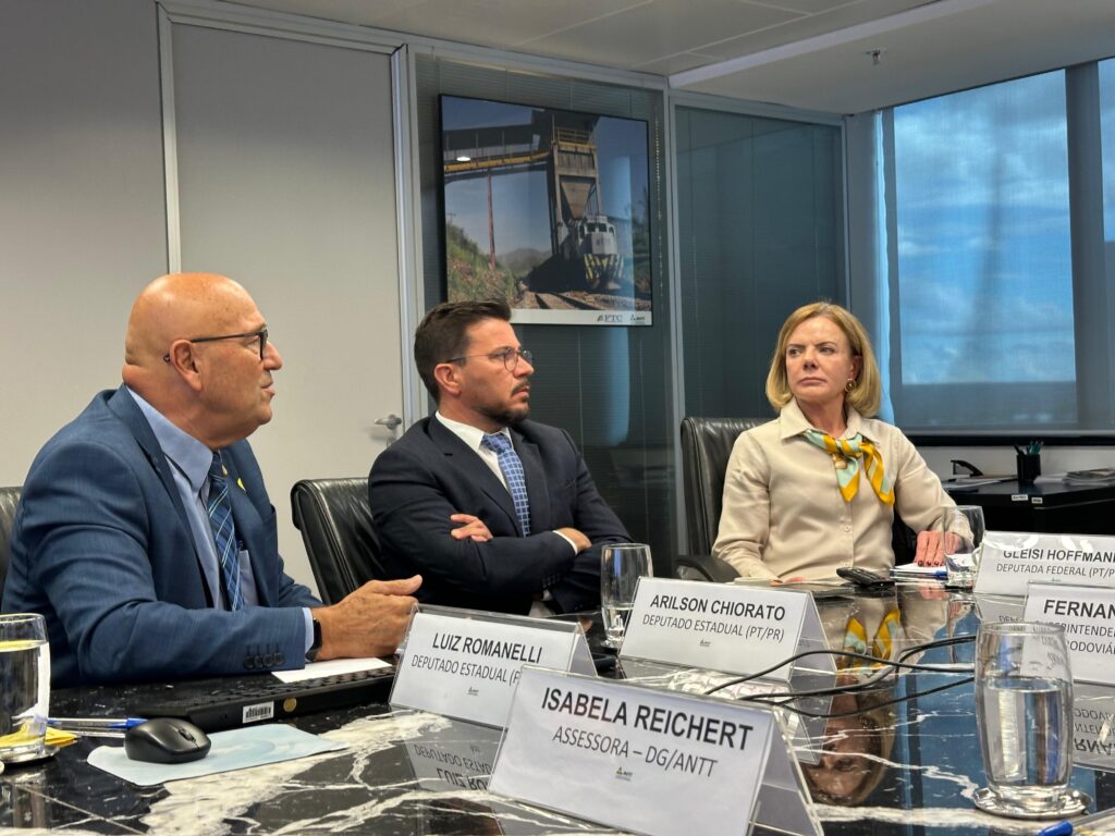 Os deputados estaduais Luiz Claudio Romanelli (PSD) e Arilson Chiorato (PT), junto com a deputada federal Gleisi Hoffmann, ex-ministra das Relações Institucionais, receberam nesta segunda-feira (6) a confirmação do presidente da ANTT, Guilherme Sampaio, de que a agência vai suspender as cobranças indevidas de pedágio pelo sistema free flow nas rodovias do Paraná.