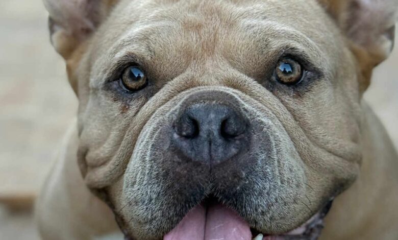 Kyra é de porte baixo, com corpo robusto, compacto e musculoso, cabeça larga e característica da raça. Possui pelagem curta, lisa e brilhante, na cor caramelo (bege/marrom claro).