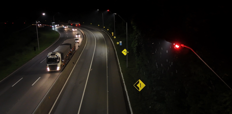 A iniciativa é inovadora. Foram instalados na extensão do km 40 da BR-277, nos dois sentidos da rodovia, 20 refletores de iluminação com lâmpadas que permitem a sinalização por meio de cores. As tonalidades são alteradas conforme acionamento do Centro de Controle Operacional (CCO) da concessionária e cada cor representa uma mensagem.