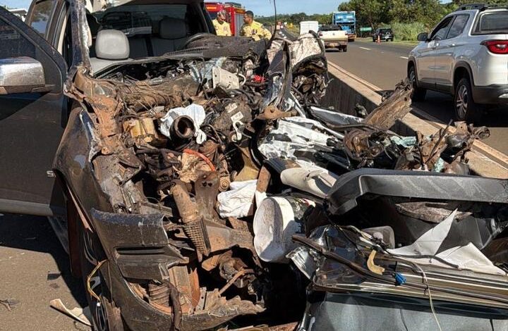 De acordo com informações da PRF, o caminhão estava imobilizado na faixa da direita, dentro de uma área devidamente isolada por cones, em razão de obras na pista. O condutor da caminhonete, um homem de 43 anos, perdeu o controle da direção, invadiu a área interditada e colidiu violentamente na traseira do veículo.