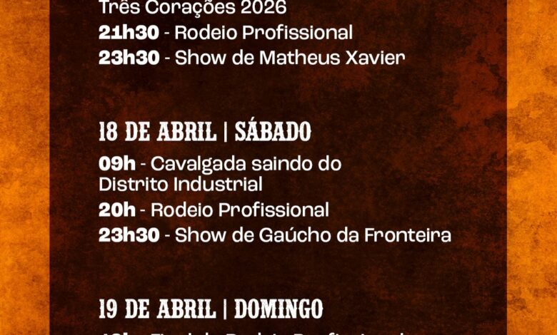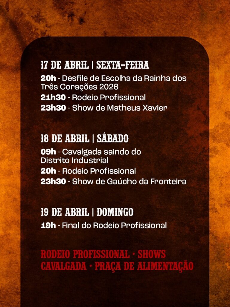 De 17 a 19 de abril, prefeito e vice esperam toda a região no Patrimônio dos Três Corações para viver momentos inesquecíveis.