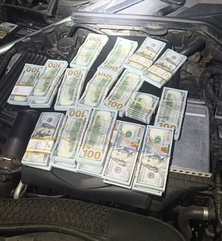 Quantia estava oculta no compartimento do motor; dois suspeitos foram presos por lavagem de dinheiro