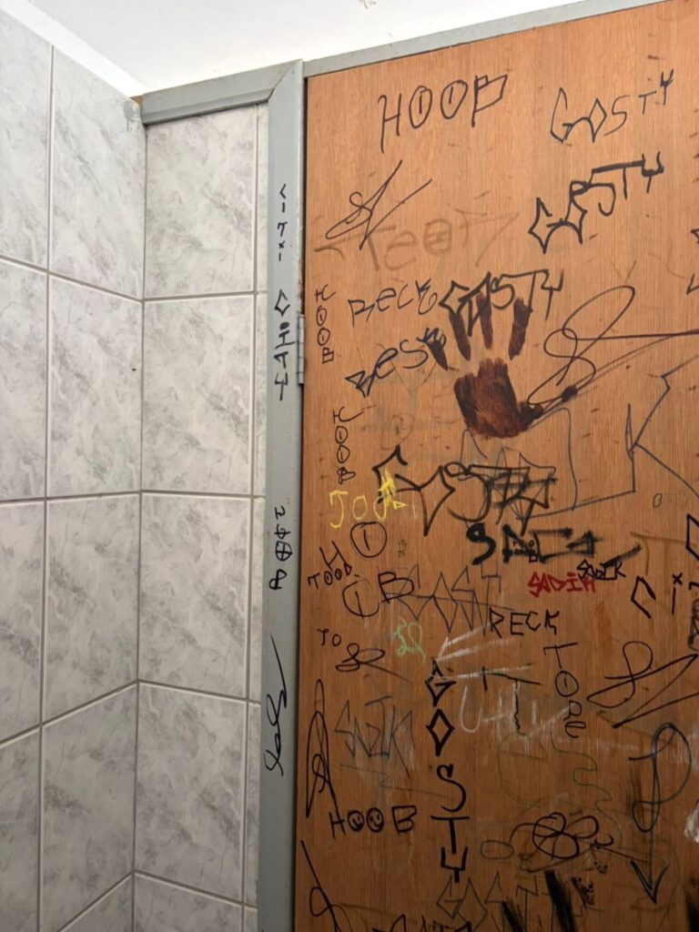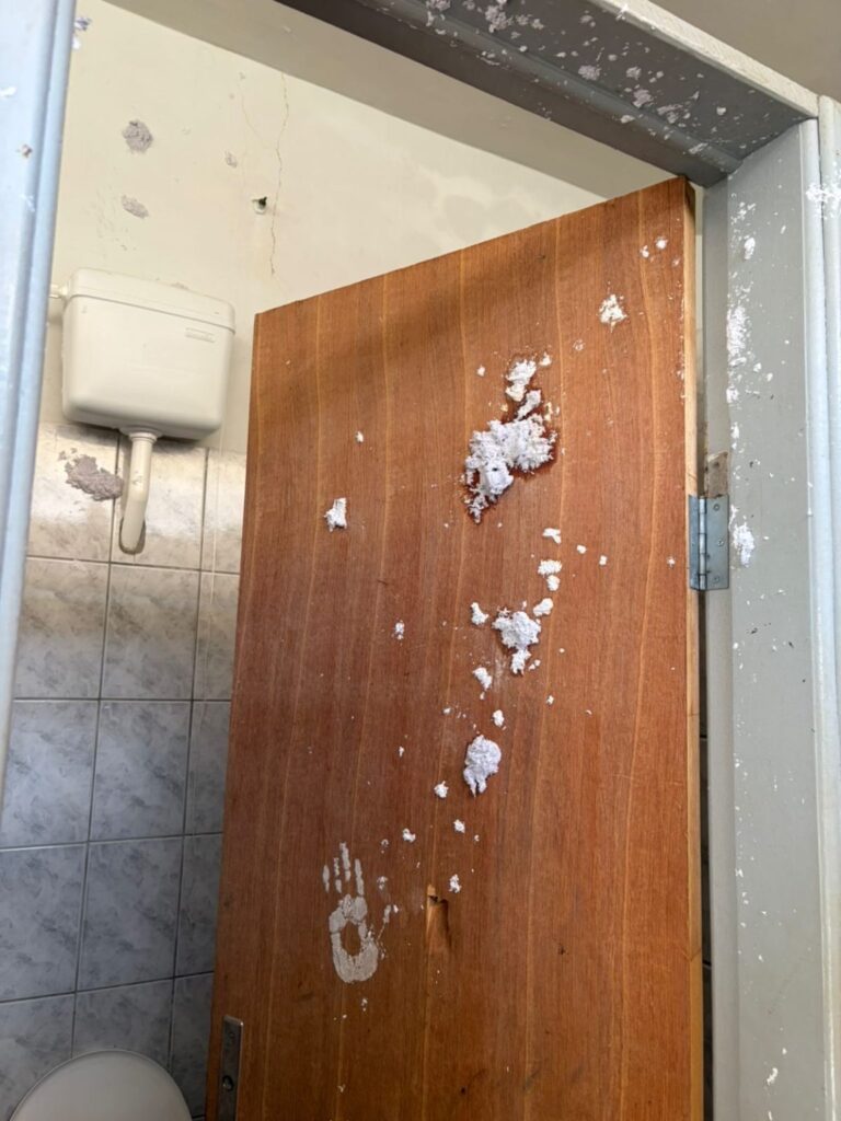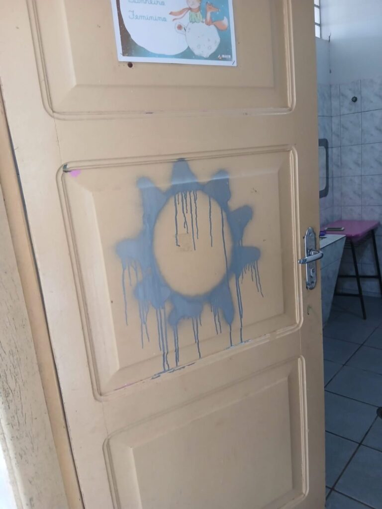 Vidros foram quebrados, portas danificadas e paredes pichadas, deixando marcas de um ato que vai além do prejuízo material e atinge diretamente a comunidade escolar.