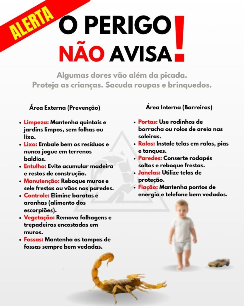 Para que o município tenha uma dimensão real da infestação e possa agir de forma pontual, é fundamental que o cidadão reporte o aparecimento de escorpiões em sua residência.