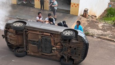 Carro é ‘fechado’ por caminhonete, bate em