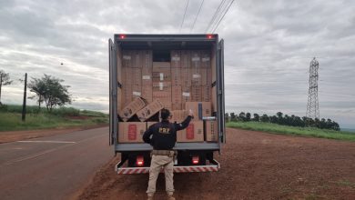 PRF apreende caminhão carregado com cigarros em Bandeirantes.