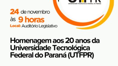 Assessoria Parlamentar A UTFPR é a primeira universidade tecnológica do Brasil e a maior universidade federal multicampi do país. Créditos: Arte: Anne Botero A Assembleia Legislativa do Paraná (Alep) realiza, na segunda-feira (24), às 9 horas, sessão solene em comemoração aos 20 anos da criação da Universidade Tecnológica Federal do Paraná (UTFPR). Proposta pelo deputado estadual Goura(PDT), a homenagem acontece no Auditório Legislativo e terá transmissão ao vivo pelas redes sociais…