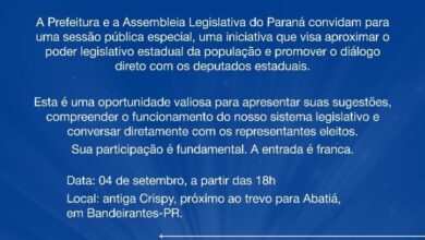 O deputado Luiz Cláudio Romanelli (PSD) reforçou nesta segunda-feira, 1º de setembro, o convite aos moradores, prefeitos, vice-prefeitos, vereadores e representantes de entidades e sociedade civil organizada para mais edições da Assembleia Itinerante em Bandeirantes nesta quinta-feira (4) e em Carlópolis na sexta-feira (5). “Vamos participar nas duas sessões especiais que são definição da expressão e participação popular. É o que chamamos de democracia participativa”, disse. “Estamos nas 28ª e…
