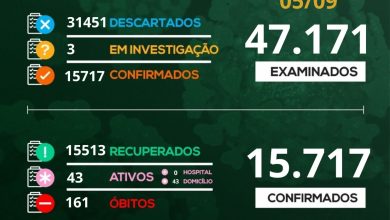 Da Redação Após 10 dias sem apresentar o boletim epidemiológico com os casos de Covid-19, a Secretaria Municipal de Saúde publicou na tarde de hoje o balanço referente aos dias 25 de agosto e esta segunda-feira, 05 de setembro, totalizando 62 novos casos. A soma desde o início da pandemia alcança agora 15.717 casos. A estatística apresenta 15.513 pacientes recuperados, 43 casos ativos, todos em isolamento domiciliar, 161 óbitos…