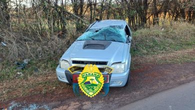 Caminhonete capota na PR-092 em Santo Antônio da Platina