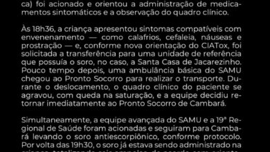 Prefeitura de Cambará publica Nota Oficial sobremorte de criança por picada de escorpião