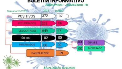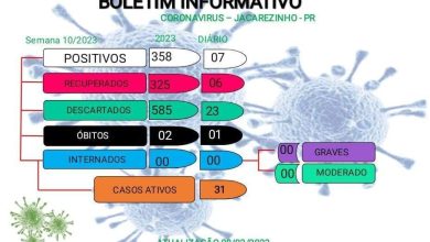 Da Redação O boletim epidemiológico da secretaria municipal de Saúde de Jacarezinho traz sete novos casos de covid-19 na atualização dos dados nesta sexta-feira (10).O informe também traz 27 casos descartados e seis pacientes recuperados. Agora são 39 casos ativos, todos em isolamento domiciliar.