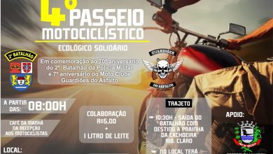 Da Redação Em comemoração ao aniversário de 70 anos do 2° Batalhão de Polícia Militar, a corporação promove o 4º Passeio Motociclístico Ecológico Solidário, no dia 7 de maio.O evento, realizado com a colaboração do Moto Clube Guardiões do Asfalto e da prefeitura municipal de Jacarezinho, terá início na sede do 2º BPM, em Jacarezinho, saindo às 10h30, com destino à prainha do balneário da Cachoeira do Espírito Santo, em…