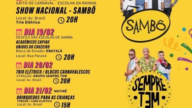 DA ASSESSORIA Está oficialmente divulgada a programação do Carnaval Jacarezinho 2023, organizado pela prefeitura do município com atrações do dia 18 a 21 de fevereiro. O grande destaque da retomada da tradicional festa popular de Jacarezinho é o grupo Sambô, que se apresenta em show no dia 18, fazendo a abertura do evento na Avenida Brasil. No dia ainda estão previstos Grito de Carnaval, escolha da Rainha e trio elétrico.…