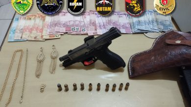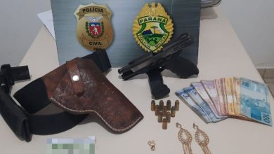 Pistola apreendida em operação Da Redação Uma pistola da marca Taurus foi apreendida durante operação conjunta entre Polícia Militar e Polícia Civil em Santo Antônio da Platina, realizada na tarde desta terça-feira (14). Segundo informações repassadas pela PM, em cumprimento de mandados de busca e apreensão, os agentes apreenderam a pistola além de 10 munições calibre .40, um cinto de guarnição com coldre em couro, uma pulseira, um colar, um…