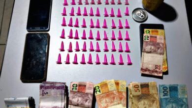 Jacarezinho Tráfico PM Na manhã de sábado (09), por volta das 11h20, uma ação conjunta das equipes ROTAM, ROCAM e ALI do 2º Batalhão de Polícia Militar resultou na apreensão de drogas, dinheiro e celulares no bairro Aeroporto, em Jacarezinho. A operação foi desencadeada após informações repassadas pela equipe de inteligência do 2º BPM. Os policiais realizaram abordagem em uma adega localizada na Rua Fernando Botareli, onde encontraram 51 pinos…