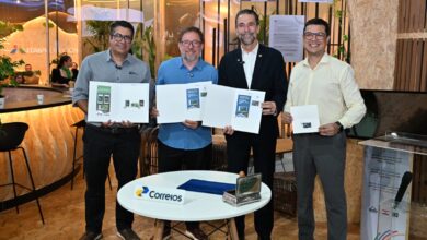 Correios lançam selos comemorativos no estande da Itaipu na COP30