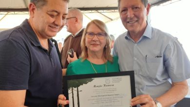 Deputado Cobra Repórter homenageia município pela conquista, com votos de congratulações da Assembleia Legislativa Da Assessoria Na última sexta-feira (22), o deputado estadual Cobra Repórter (PSD) entregou ao prefeito de Siqueira Campos, Luiz Henrique Germano, presidente da Associação dos Municípios do Norte Pioneiro (AMUNORPI), e à primeira-dama, Marisa Germano, a Menção Honrosa e o Voto de Congratulações da Assembleia Legislativa do Paraná por ter sido considerada a cidade mais sustentável…