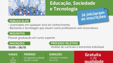 Da Assessoria O IFPR de Jacarezinho abre inscrições para o processo seletivo visando preenchimento de 22 vagas para o curso de especialização em Educação, Sociedade e Tecnologia. Podem se inscrever para concorrer às vagas, graduados em qualquer área do conhecimento desde que concluída sua graduação. O curso é gratuito, presencial e o estudante pode escolher o dia da semana para cursar as disciplinas. Ao total são 360h divididas em componentes…