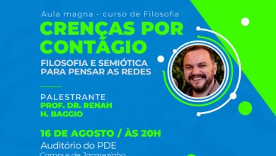 Imprensa Uenp O colegiado do curso de Filosofia da Universidade Estadual do Norte do Paraná (UENP) realizará, no dia 16 de agosto, a aula magna do ano letivo de 2023. Com o tema “Crenças por Contágio: Filosofia e Semiótica para pensar as redes”, a atividade, que é realizada anualmente, ocorrerá no Auditório do PDE do Campus de Jacarezinho. Ministrada pelo professor-doutor Renan Henrique Baggio, a aula magna abordará temática educacionais…