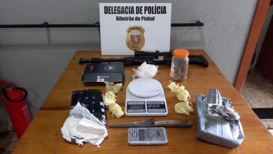 Imprensa PCPR Ação operacional da Polícia Civil de Ribeirão do Pinhal resultou na apreensão de mais de um quilo de cocaína, porções de maconha além de balança de precisão, faca e apetrechos utilizados para embalagem de drogas. As diligências ocorreram na tarde desta sexta-feira (24) em uma residência situada no bairro Vila Domingues, popularmente conhecido como “rancharia”. Amparados por determinação da Justiça, policiais civis vistoriaram a residência, localizaram os objetos…