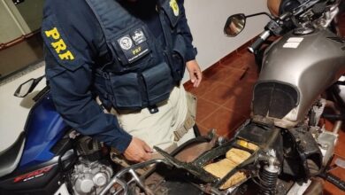 PRF-SP Foram encontrados 7,3 kg de cocaína na fronteira entre São Paulo e Paraná; a droga estava escondida em fundo falso de motocicleta Assessoria Na sexta-feira (30), a Polícia Rodoviária Federal (PRF) prendeu dois suspeitos por transporte de cocaína no município de Carlópolis/PR. A ação ocorreu após fiscalização orientada por análise de risco. Os policiais localizaram dois indivíduos com duas motocicletas em um hotel da região após monitoramento na BR-153. Durante…